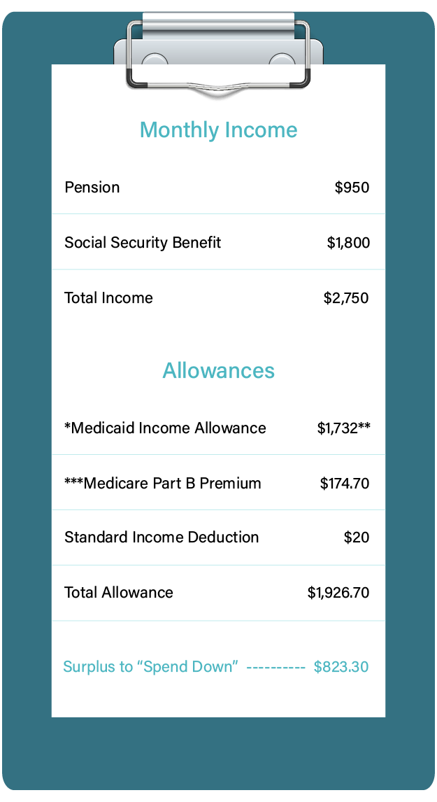 Leveraging a well-established approach, we aim to assist elderly and disabled Medicaid recipients in retaining surplus income to cover their nonmedical monthly expenses, such as rent, groceries, and utility bills, thus addressing the essential daily living costs